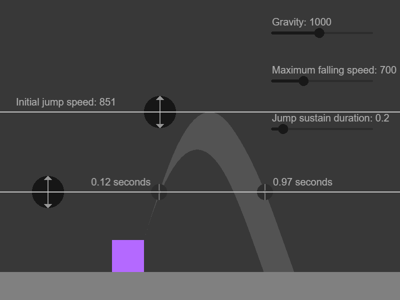 • Jump sustain time is how long the jump speed can be kept to the initial value while players hold the jump key.